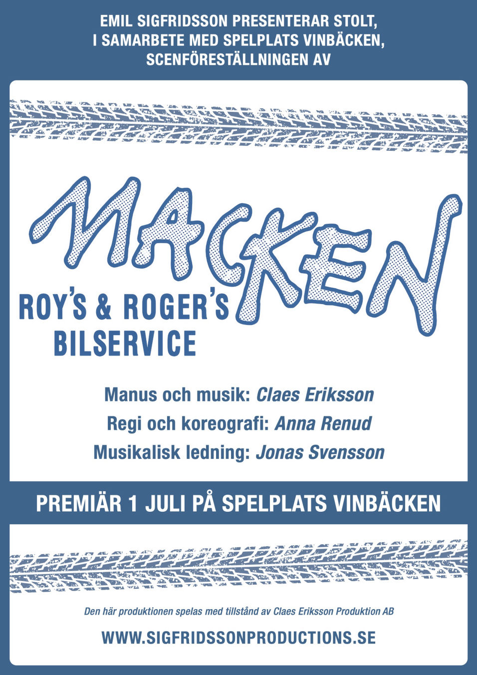 Sommaren 2026 inleder vi ett nytt och spännande samarbete när vi tillsammans med Emil Sigfridsson Produktion sätter upp Macken av Galenskaparna & After Shave på Spelplats Vinbäcken. Föreställningen firar dessutom 40-årsjubileum, vilket gör denna uppsättning extra speciell. Publiken kan se fram emot en kärleksfull och energifylld hyllning till en av Sveriges mest älskade TV-komedier – i ny tappning, men med samma galna hjärta.